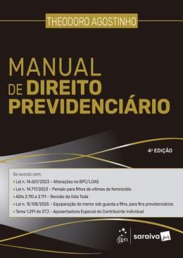 Produto sob Encomenda Manual de Direito Previdenciário tem o objetivo de sistematizar toda a matéria dessa disciplina, apresentando diversos diferenciais: orientações em destaque (PREVDICAS); temas pouco abordados em outros cursos, como o processo previdenciário (incluindo processo administrativo fiscal e ações previdenciárias); e poucas notas de rodapé, que tiram a atenção e o foco do texto.Theodoro Agostinho utiliza toda a sua experiência como professor de direito previdenciário para trazer conteúdo seguro, amplo e didático, visando o melhor aprendizado possível ao leitor.Vale ressaltar que o livro está atualizado com a Reforma da Previdência – Emenda Constitucional n. 103/2019 –, com o Decreto n. 10.410/2020, assim como com a Instrução Normativa do INSS n. 128/2022, a Lei n. 14.601/2023 – alterações no BPC/LOAS – e a Lei n. 14.717/2023 – pensão para filhos de vítimas de feminicídio – e com as legislações e portarias editadas nos anos de 2024 e 2025.O autor e o selo Saraiva Jur estão certos de que esta obra será extremamente útil aos estudantes que cursam a disciplina de Direito Previdenciário, bem como aos candidatos que se preparam para os mais diversos concursos públicos que exigem conhecimento da matéria.
